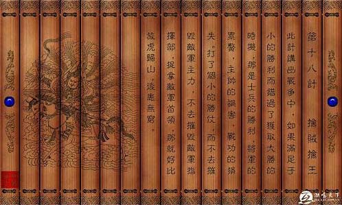 【原典】摧其坚,夺其魁,以解其体。龙战于野,其道穷也①。【注释】①龙战于野,其道穷也:语出《易经.坤》卦。坤,卦名。本卦是同卦相叠(坤下坤上),为纯阴之卦。引本卦上六,《象辞》:“龙战于野,其道穷也。”是说即使强龙争斗在田野大地之上,也是走入了困顿的绝境。比喻战斗中擒贼擒王谋略的威力。【按语】攻胜则利不胜取。取小遗大,卒之利、将之累、帅之害、攻之亏也。舍胜而不摧坚擒王.是纵虎归山也。擒王之法,不可图辨旌旗,而当察其阵中之首动。昔张巡与尹子奇战,直冲敌营,至子奇麾下,营中大乱,斩贼将五十余人,杀士卒五千余人。迎欲射子奇而不识,剡蒿为矢,中者喜谓巡矢尽,走白子奇,乃得其状,使霁云射之,中其左目,几获之,子奇乃收军退还。【故事】西门豹治邺。