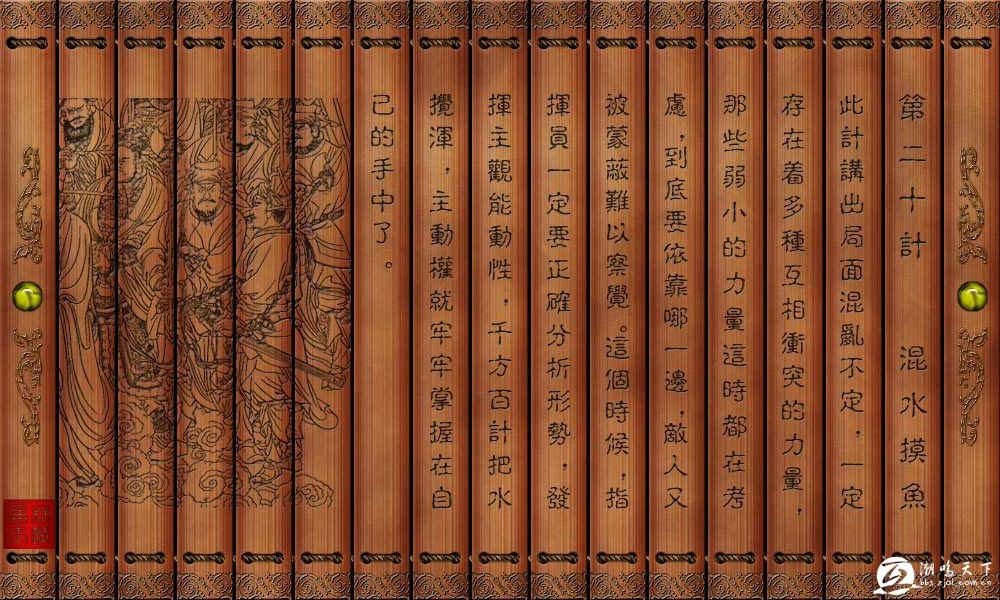 【注释】①乘其阴乱:阴,内部。意为乘敌人内部发生混乱。②随,以向晦入宴息:语出《易经.随》卦。随,卦名。本卦为异卦相叠(震下兑上)。本卦上卦为兑为泽;下卦为震为雷。言雷入泽中,大地寒凝,万物蛰伏,故如象名“随”。随,顺从之意。《随卦》的《象》辞说:“泽中有雷,随,君子以向晦入宴息。”意为人要随应天时去作息,向晚就当入室休息。此计运用此象理,是说打仗时要得于抓住敌方的可乘之隙,而我借机行事,使乱顺我之意,我便乱中取利。【按语】动荡之际,数力冲撞,弱者依违无主,散蔽而不察,我随而取之。《六韬》日:“三军数惊,士卒不齐,相恐以敌强,相语以不利,耳目相属,妖言不止,众口相惑,不畏法令,不重其将:此弱征也。”是鱼,混战之际,择此而取之。如:刘备之得荆州,取西川,皆此计也。【故事】搅乱局淝水败苻坚。