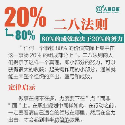 二八法则告诉我们,不要平均地分析、处理和看待问题,企业经营和管理中要抓住关键的少数;要找出那些能给企业带来80%利润、总量却仅占20%的关键客户,加强服务,达到事半功倍的效果;企业领导人要对工作认真分类分析,要把主要精力花在解决主要问题、抓主要项目上。