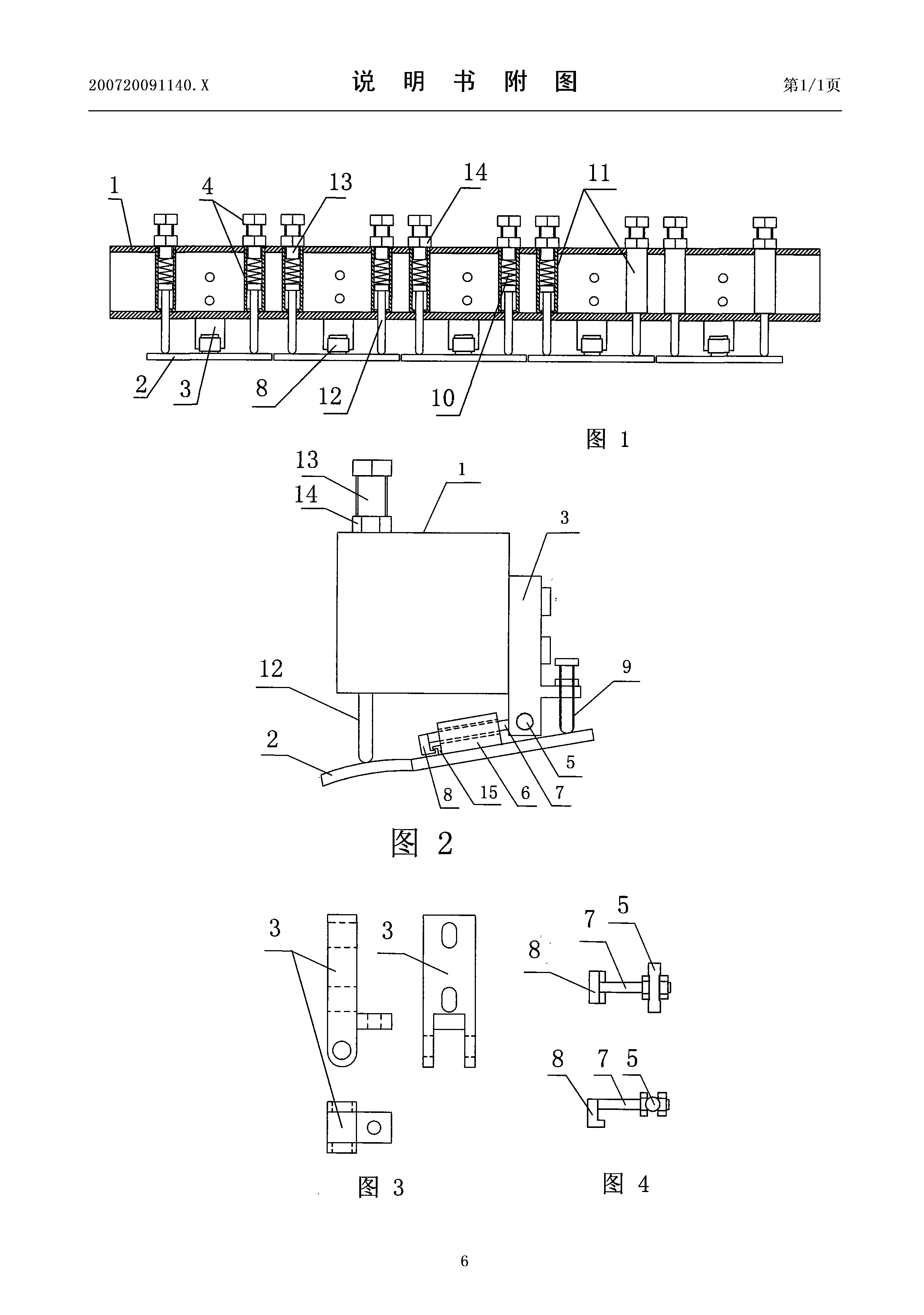 实施例二:参见图1、图2。本实施例与实施例一不同的是:弹性顶紧机构 采用现有技术,即采用压缩弹簧直接固定于安装机架下部,弹簧下端顶紧触压 片。与实施例一相比缺点是,弹簧压力不可调,弹簧工作环境差。